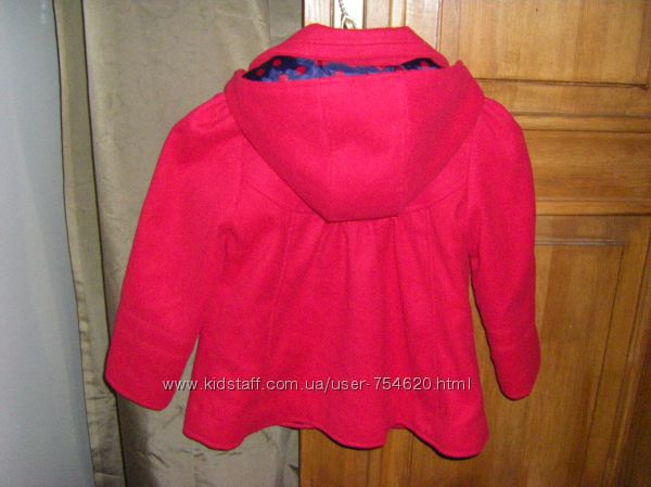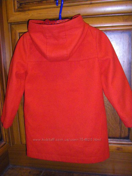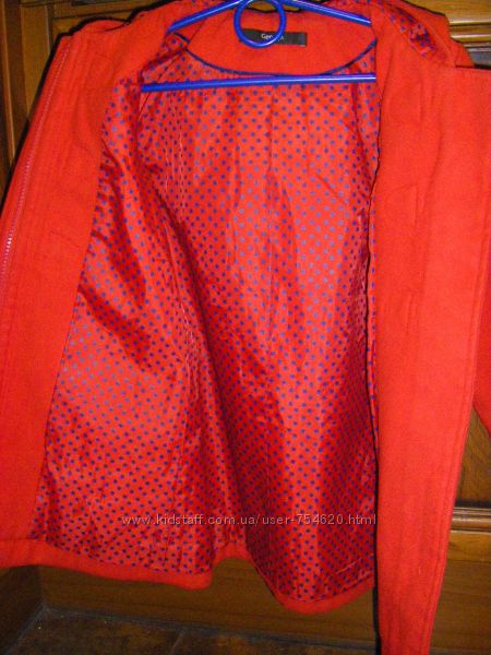 КРАСНОЕ Пальто George, не шерстяное, но приятное на ощупь, на шелковой подкладке. На стройную девочку 5 лет, рост 104-110 см. Застегивается на пуговицы и кнопки. Очень элегантное!!