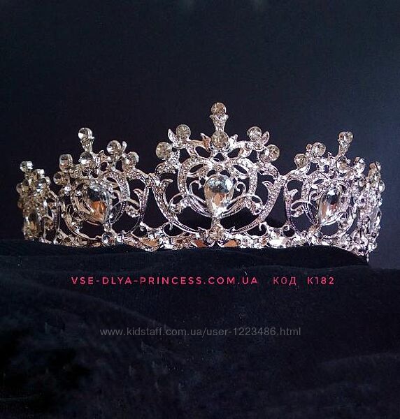 Диадема прекрасно держится на распущенных волосах и в прическе. Красиво будет смотреться на девочке с 3,5 лет. В наличии есть много подобных диадем, наличие смотрите самостоятельно или уточняйте по телефону или в личных сообщениях.Замеры:13 см ширина декоративной части с камнями (общая длина дуги по обручу 39 см), высота короны 4,5 см.