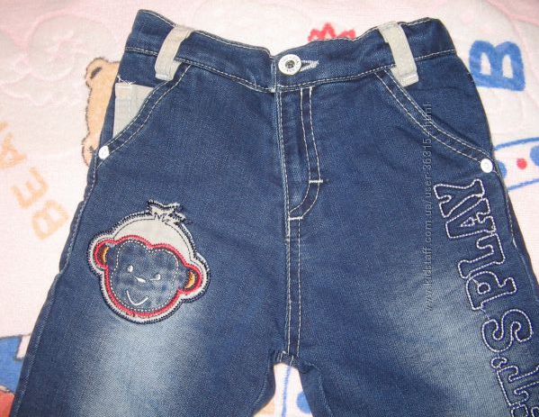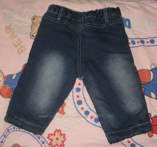 Продам утеплённые джинсы для мальчика на 9-12 месяцев, рост 74-80см- б/у. Состояние отличное, колени не потёрты, без пятен, низ не затёрт. Змейка в исправном состоянии. Пояс застёгивается на металлическую пуговицу, сзади в поясе резинка. Подкладка- флис хорошего качества.ЗАМЕРЫ :