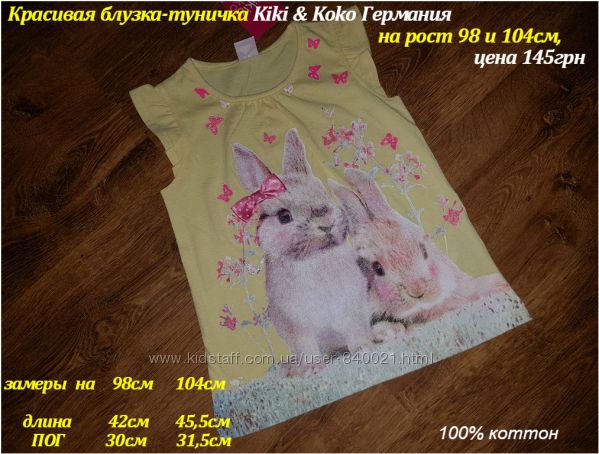 Яркие и очень красивые блузки-футболки для модницы фирмы Kiki & Koko Германия на рост 98, 104см, цена 145грн.Замеры и цену см. на фото 2.