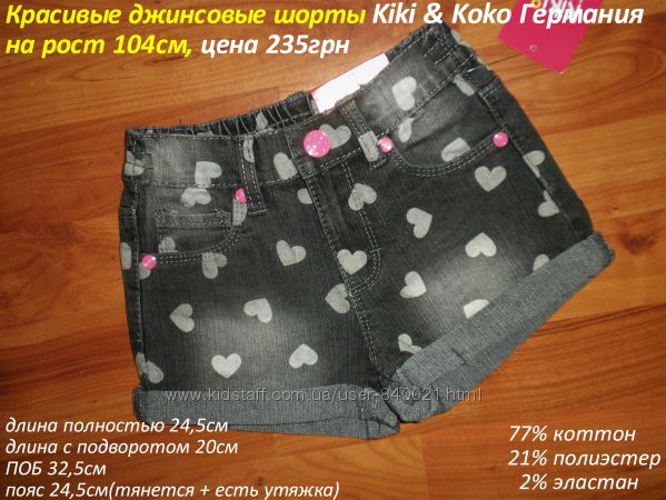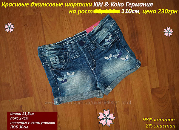 О чень красивые джинсовые шорты для модницы фирмы Kiki & Koko Германия, все замеры и цены на фото.Замеры см. на фото