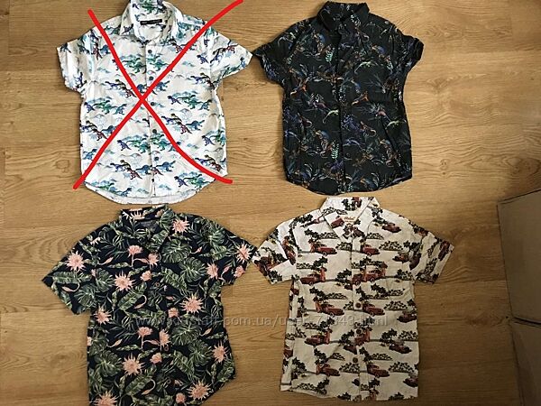 Розовая рубашка НМ 4-5л Длина от плеча- 43см, ширина- 34,5см, длина рукава от плеча- 36см, цвет чуть розовее чем на фото Мятную рубашку отдам к покупке чуть пятнышко где пуговицы и сзади внизу.Джинсовая 4-5л Длина от плеча сбоку 43см + пару см полукруг сзади, ширина- 34,5см, длина рукава от плеча- 38см