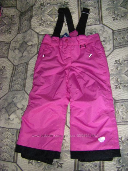 Многофункциональные зимние (лыжные) термоштаны немецкой фирмы Lupilu, сделаны из высококачественного водо- и ветроотталкивающего материала, утепленные с герметичными швами. Штанишки водо и грязеотталкивающие благодаря системе BIONIC FINISH ECO. Водонепроницаемость внешней ткани — 3,000 мм водяного столба. Брюки на регулируемых подтяжках, при необходимости можно снять. Штаны прошли тест на содержание вредных веществ. Отличный вариант для детского сада (активных игр на улице).
