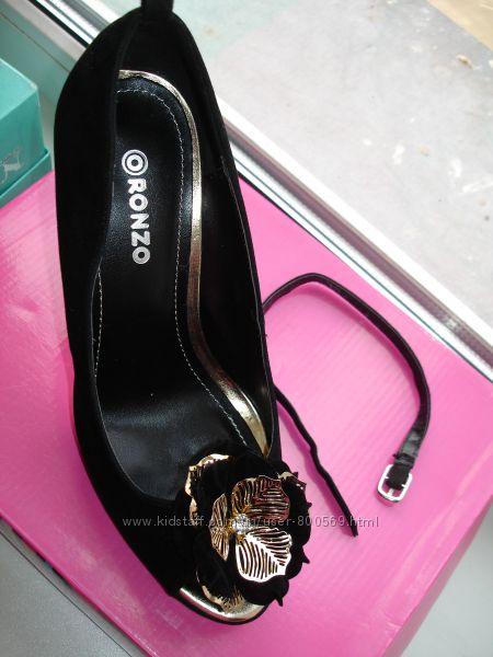 Каблук 11, 5 см, платформа 2 см с открытым носочком, впереди декорированы шикарным цветком из металла, замши и нежно – мерцающего камушка. Вдоль ножки и вокруг щиколотки ножку фиксируют изящные тоненькие ремешки. Ремешок вдоль ножки можно убрать – тогда останется только ремешок вокруг ножки. Также можно убрать оба ремешка, тем самым превратив их в обычные туфли – лодочки без ремешков. Невероятно устойчивая и удобная колодка. Туфли очень мягкие и комфортные. Верх выполнен из искусственной замши. Внутри – искусственная кожа.