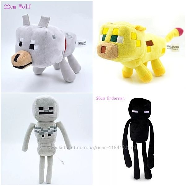 Мягкие игрушки из майнкрафт. Размер 16-18 см.Эндермен и Скелетон 25см.
