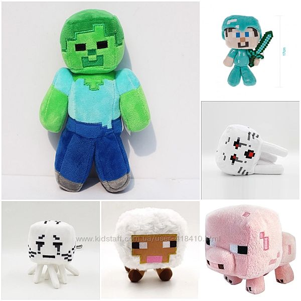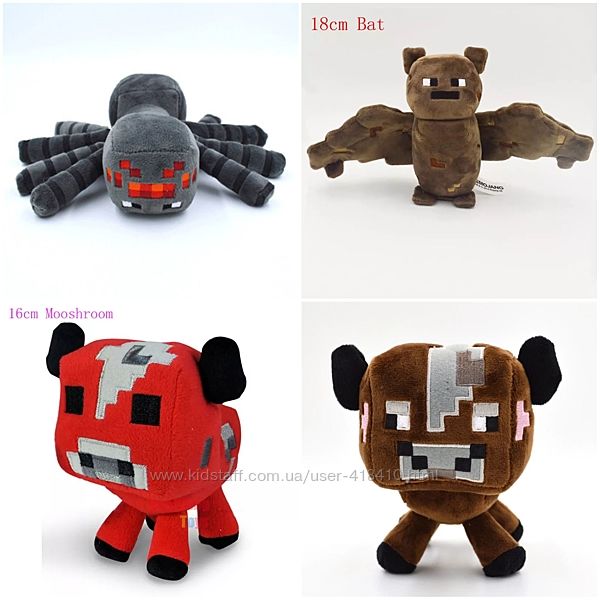 Эндермен , крипер , зомби , летучья мышь , паук , гаст , свинка, оцелот , скелет , волк , корова (красная и коричневая ) , овца , осьминог и динамит -все по 220грн