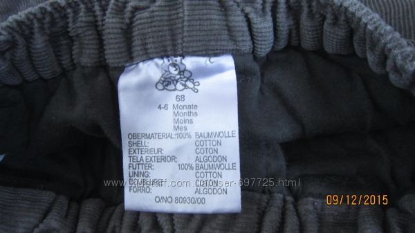 Подробное описание: Вельветовые штаны хаки на подкладке р. 68 см 4-6 мес.