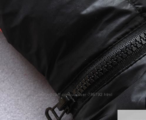 На замке. Два кармана снаружи, капюшон отстегивается, красивый манжет.