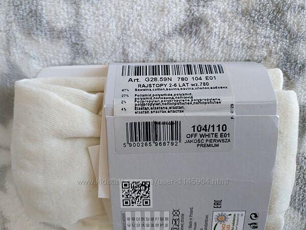 Склад: 67% бавовна, 27% поліестер, 2% поліпропілен, 4% еластан