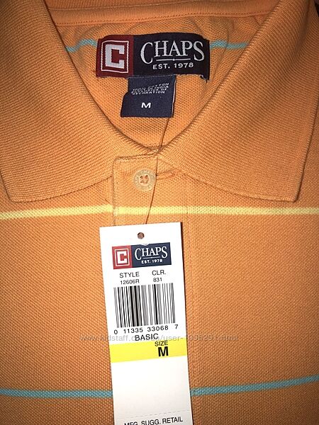Мужское поло Chaps 12606R (size M). Качественное и яркое поло от второго бренда Ральфа Лорена. Ткань - pique ("сеточка"). Состав: 100% хлопок. Размеры (смотрите последнее фото): A - 49cm, B - 56cm, C - 25cm, D - 75cm, E - 16cm. Допускаются отклонения на 1-2 см от реальных размеров вследствие неточностей при измерении. Абсолютно новое, со стикером и бумажной этикеткой. Оригинал.Возможна доставка по Украине (Новая Почта, Укрпочта) - форма оплаты по договоренности.