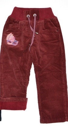 Брюки вельветовые утепленные флисом на девочек 92,122 роста в синем цвете; 92,98,110 терракот. Флисовая подкладка высокого качества - не электризуется и держит тепло. Посадка высокая, что для зимних холодов особенно важно. Широкая трикотажная резинка хорошо облегает по поясу, плюс в нее вставлен шнурок для регулирования нужного объема талии. По бокам два кармана, на одном из них рисунок. Сзади тоже два кармана. По низу вставлена резинка, но стягиваются не сильно, сделана с той целью, чтобы штанины не мочились от снега. В холодную пору года девочкам нужна не только теплая, но и удобная и практичная одежда на каждый день. Вельветовые брюки - это удобная и модная одежда для детей. Утепленные вельветовые брюки из качественного материала хорошее решение для холодного времени года. Особенно важно это для девочки, которая в будущем когда вырастит станет мамой. Вельветовые брюки высокого качества не будут сковывать движения Вашей дочери, они отлично сидят, приятно прилегают к телу. Если соблюдать правила ухода и стирки изделие носится очень хорошо. Изделие отлично сохраняет свой первоначальный внешний вид даже после многочисленных стирок. Утепленные вельветовые брюки производителя A-yugi из качественного материала станут самой любимой вещью Вашей дочери. Ведь их можно одевать как на прогулку так и в гости. С ними сочетаются кофточки и гольфики любого стиля. Такая вещь хорошо смотрится с любой верхней одеждой, подходят как для праздничных случаев так и для ежедневных прогулок. Уютные и качественные вельветовые брюки обязательно понравятся Вашей дочери.