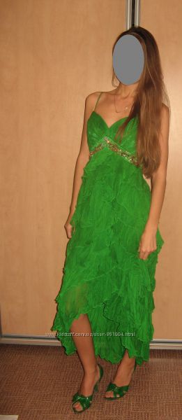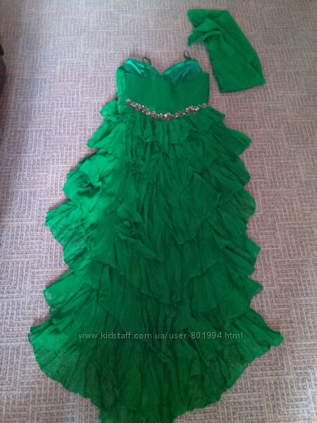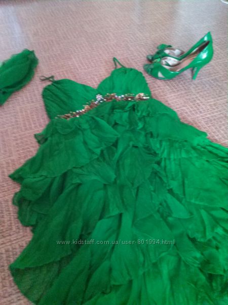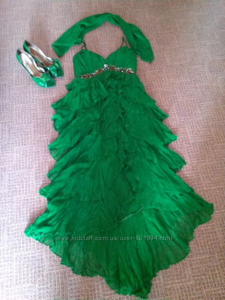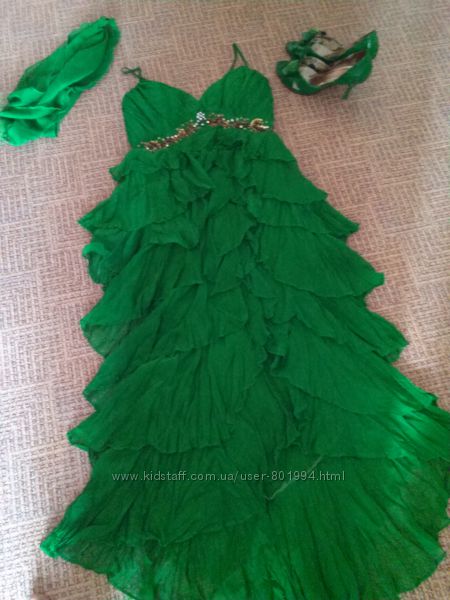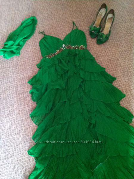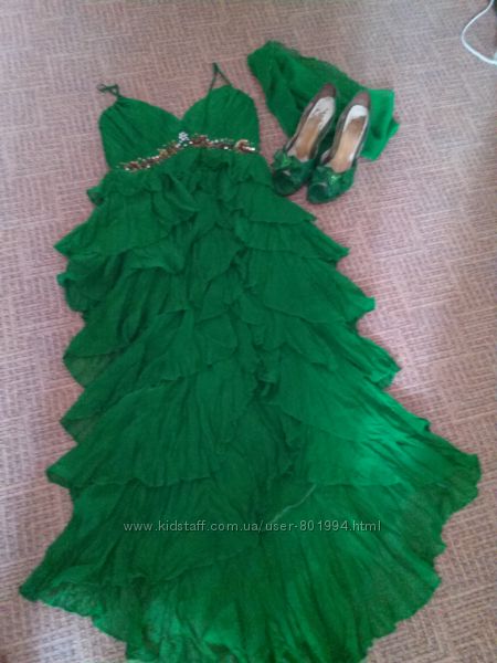 Вечернее платье невероятной красоты,отличный вариант на выпускной, торжественное мероприятие, вечеринку или романтическое свидание. Никаких волнений по поводу сходства – в нем Вы будете чувствовать себя особенной на любом празднике, потому что данная моделька платья сделает это событие лично для Вас просто сказочным! Шикарный зелёный цвет-цвет изумруда,возле груди вышивка ручной работы,в комплекте с платьем идёт шаль(накидка) такого же цвета.Размер M,S.Ткань шифон.ОБМЕНА И ВОЗВРАТА НЕТ!