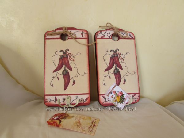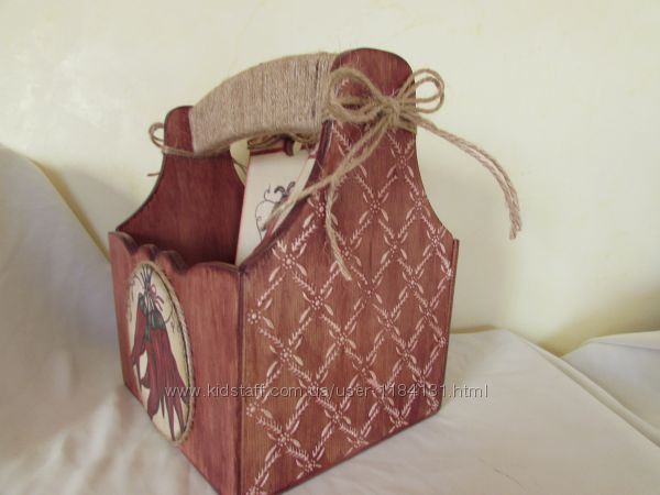 Набор для кухни из 3-х предметов:корзинка для специй,две досточки-вешалки для полотенец. Набор задекорирован в смешанной технике декупаж,трафарет,морение,легкое состаривание.Размер:корзинка 18х23х14см,досточки-11х20смПредложения Premium магазинов