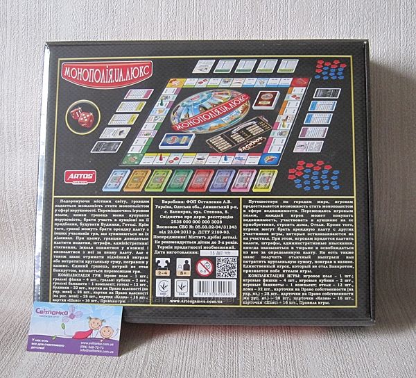 ФОТО 1-3. Настольная экономическая игра "Монополия Люкс"Путешествуя по городам мира, игрокам предоставляется возможность стать монополистом в сфере недвижимости. Перемещаясь по игровому полю, каждый игрок может покупать недвижимость, участвовать в аукционе на ее приобретение, строить дома, отели. Кроме того, игроки могут брать арендную плату с других участников игры, которые останавливаются на их участках. При этом игрокам придется платить налоги, штрафы, административные взыскания, иногда оказываться в тюрьме и освобождаться из нее за определенную плату. Но есть также шанс получить отличный выигрыш или потратить грубленькую сумму, поиграв в казино. Единственный игрок, который не стал банкротом, признается победителем игры.
