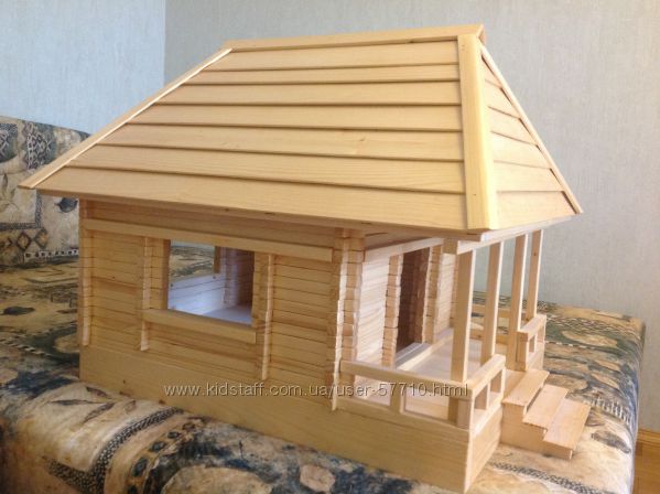 Деревянный кукольный домик. Интересная и необычная игрушка. Эксклюзивное исполнение. Ручная работа. Натуральное дерево. Экологически чистый материал. Домик имеет - одну большую комнату, окна, есть терраса. Все накрывается съемной крышей. Есть гараж. Крыша гаража - несъемная.