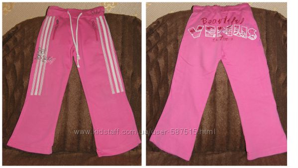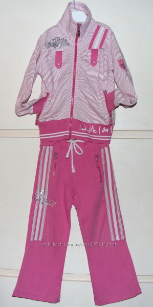Спортивный костюм-тройка ТМ Puledro (б/у), размер указан 80, но большемерит идёт на рост 98-104 см. В комплект входит: штаны,кофта,майка+отдаю реглан с рукавом 3/4 ТМ George. Костюм идёт с вышивкой на штанах, кофте и майке (см.фото).Штаны: на резинке (есть утяжка шнурок),с двумя карманами на замке (на бегунках немного слезла краска).На попе - надпись-накатка, на штанинах по три ломпаса. Замеры: ширина резинки - 4,5 см.; ПОТ - 25 см.; ПОТ тянется до~~28-28,5см.; посадка - 22 см. (с учётом резинки); длина штанины по внешней стороне бедра (с учётом резинки) - 59 см.; длина штанины по внутренней стороне бедра - 42,5 см.; полуобхват штанины (от матнюшечки) - 18 см.