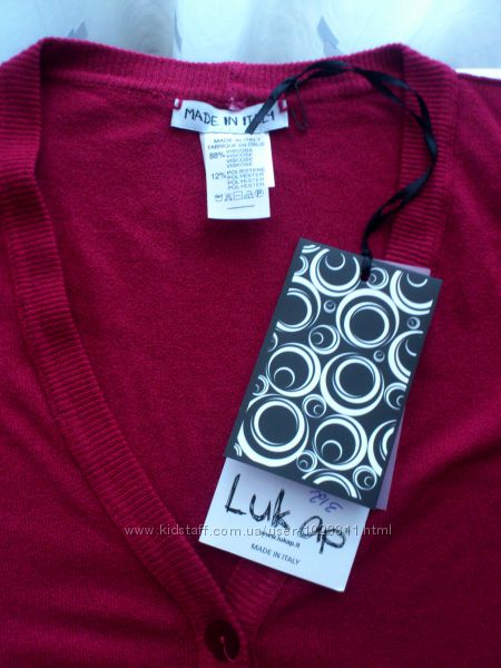 Новый кардиган вишневого цвета ,производство Италия марка Luk ap размер L. Замеры: ПОГ-49см.Длина изделия-64см.