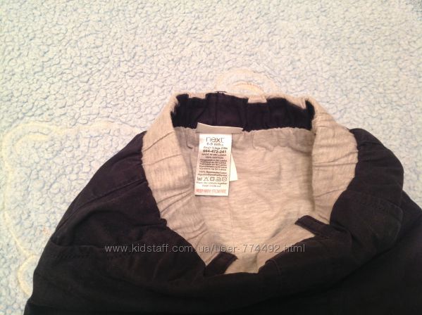 Стильные брючки котон на подклада Next 6-9 мес. Покупали для себя, бирку оторвали, не носили. Отдам дешевле. Длина 35 см, шаг 18 см, пояс 21 смДругие объявления продавца