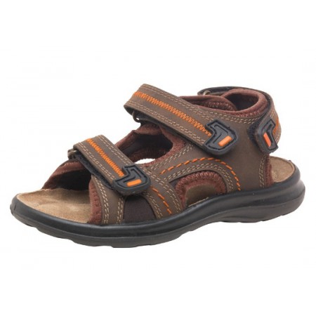 Стильные кожаные босоножки для мальчика. Босоножки изготовлены из мягкой натуральной кожи, максимально открыты и удобны в носке. Между подошвой и стелькой присутствует мягкая подушечка, которая способствует оптимальной амортизации при ходьбе и обезопасит ножку от травм. Спереди и сзади предусмотрены липучки, благодаря которым можно регулировать подъём и ширину ступни.