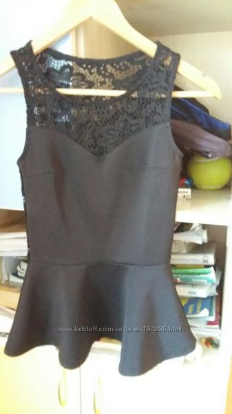 Еффектный топ с баской и кружевом, XS. S