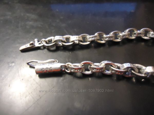 В наличии браслет такого же вида ( Размеры звеньев - ширина 10 мм., Общая длина - 22,5 см., Длина в застёгнутом состоянии - 22,2 см., Вес - 46,37 грамма. Цена 3800 грн.). Возможно взять в виде комплекта, в таком случае общая сумма будет 7800 грн.