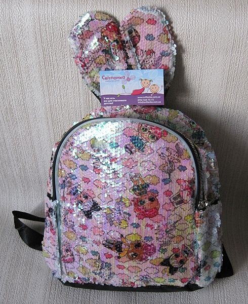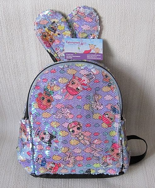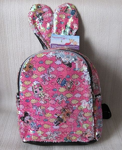 Рюкзак детский с пайетками, ушками и светом. LOL и единороги.