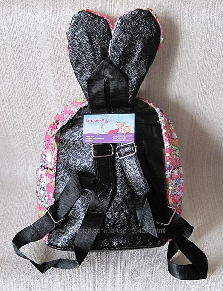 Рюкзак для девочек с ушками, пайетками-перевертышами и светом.Одно большое отделение и два кармана по бокам рюкзака