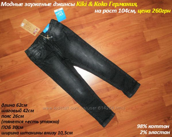 Модные зауженые джинсы для мальчика фирмы Kiki & Koko Германия на рост 104см,Замеры см. на фото 3 .