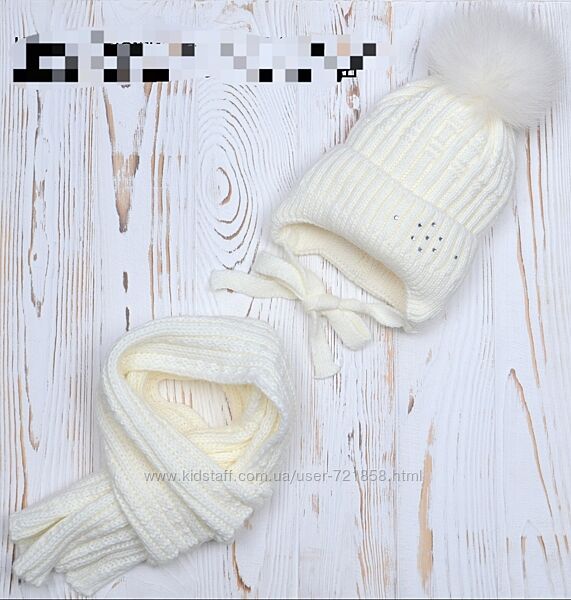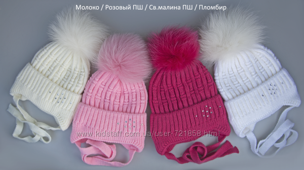 Зимова шапка на зав´язках Сніжинка.Напіввовна, всередині повністю утеплена флисом, на вухах і лобі подвійна в´язка.