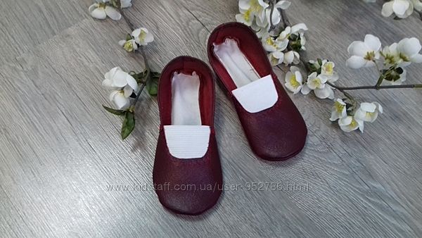 Новые кожаные чешки бордового цвета, (банты, украшения +15грн),Размеры в см: