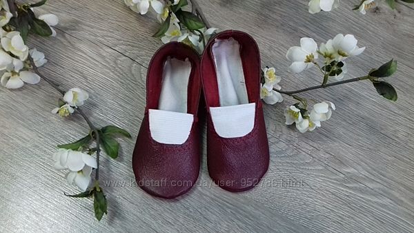 Бордовые чешки из натуральной кожи, размеры 11-30см