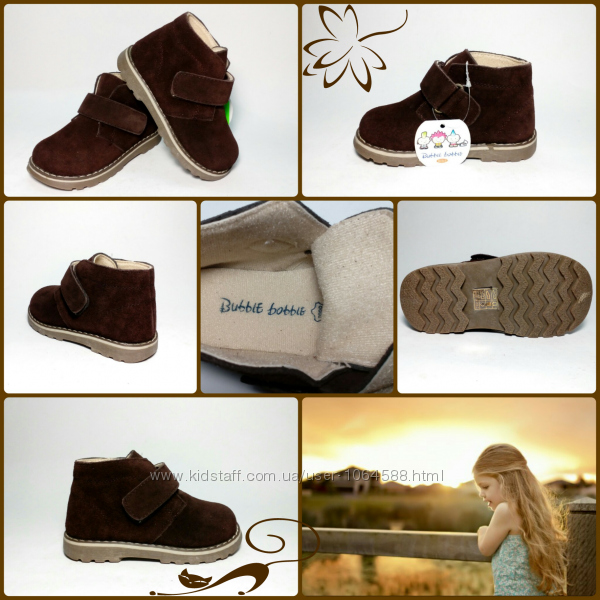 Дитячі замшеві черевики дуже красиві, якісні, зручно одягати, міцна потовщена підошва, не ковзає, застібаються на липучку, черевики дуже акуратні, роблять ніжку витонченою. Рекомендую взуття купувати з 0,5см запасуФото1