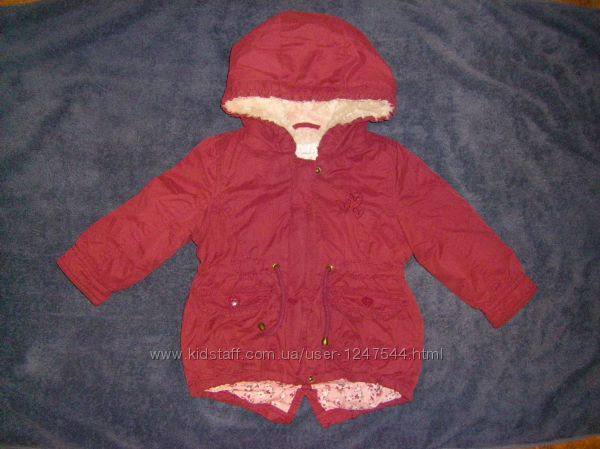 Ф.1 Вишневая весенняя и очень красивая курточка Staccato с подкладкой из белого меха для малышки. На 1годик. (80 см). Состояние очень хорошее, вся фурнитура и ткань в порядке.Ткань верха хлопквая, демисезон, до 5 градусов.
