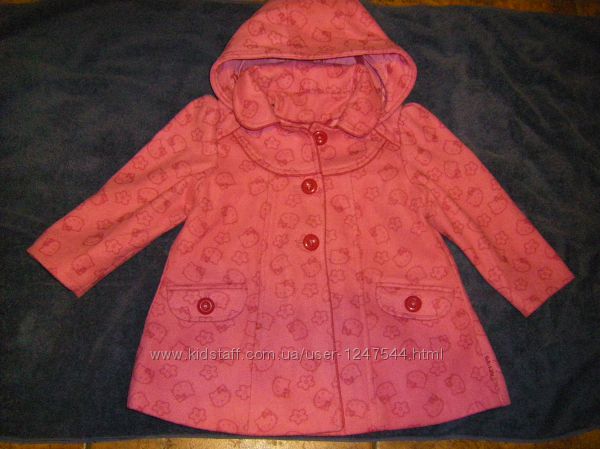 Ф.5.Розовое пальто Hello Kitty, не шерстяное, но приятное на ощупь, на подкладке. На стройную девочку 2-3 лет, рост 92-98 см. Застегивается на пуговицы. Очень элегантное!!