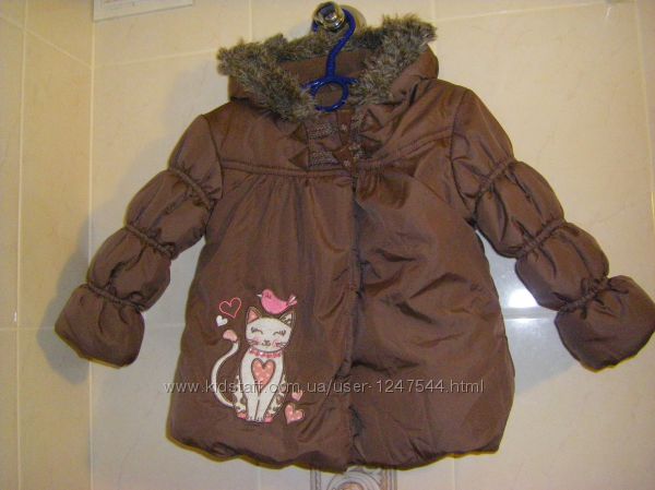 ф.8. КОФЕ С МОЛОКОМ Аккуратная куртка с кошечкой Yong demention , рост 86- 92, на 1-2 годика. Теплая, осень-зима, состояние очень хорошее. Не промокает, не маркая и очень теплая. Подкладка флис, капюшон не снимается.