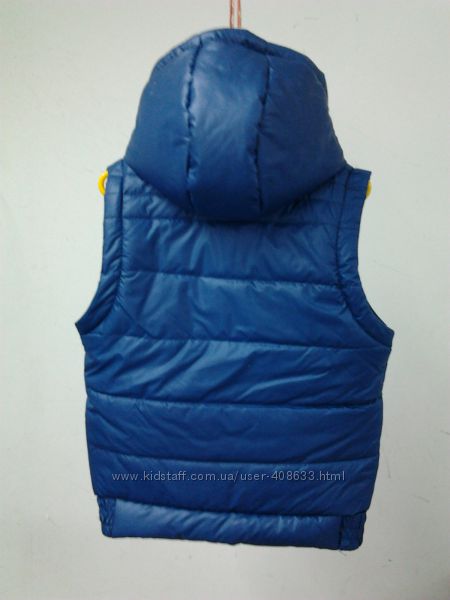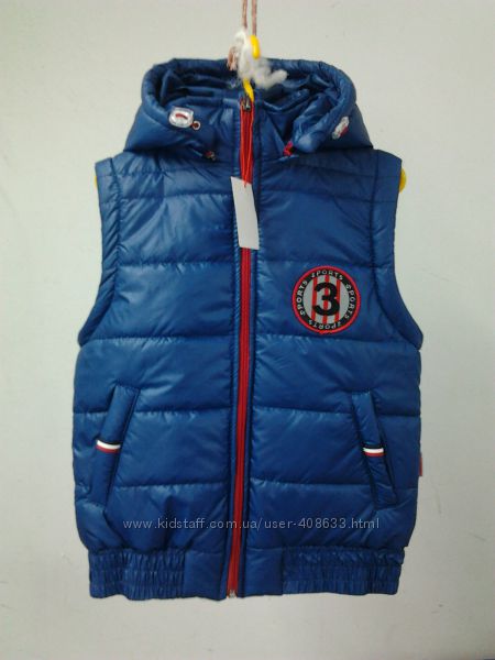 Демисезонная курточка-трансформер на мальчика.На тонком синтепоне.Рукава и капюшон отстёгиваются.Можно носить как курточку или же как стильненькую и жилетку.Размеры 110,116,122.