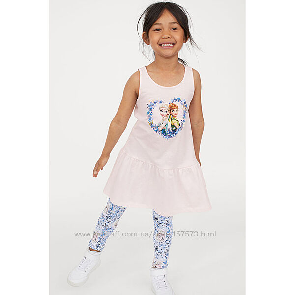 Дитячий літній костюм комплект для дівчинки з м’якого бавовняного трикотажу з принтом. Комплект із сукні сарафана і легінсів лосин. Плаття без рукавів з розклешеною спідницею . Легінси лосини з еластичною талією. H&Mр.92 - 1,5-2 роки: довжина сукні 48, ПОГ 29, довжина лосин 49