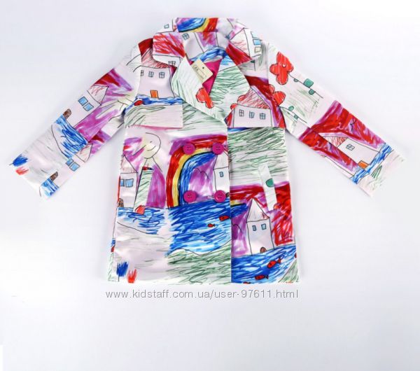 Предлагаем Вашему вниманию яркий, красочный плащ для девочки.Реплика Dolce & Gabbana. Детский рисунок.Оригинальная расцветка в виде детских рисунков придется по душе маленьким модницам.
