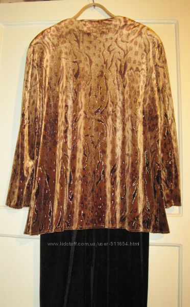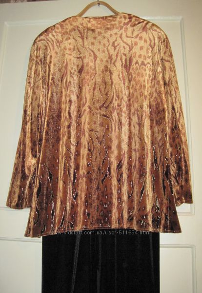 Накидка красивая, возможно носить как каждый день, так и на праздник, потому что в расцветки присутствуют золотые вкрапления, что создаёт яркую, праздничную атмосферу. Накидка идет на размер 48-54. На самой накидке размер не указан, сужу по себе и размерам самой накидки. Отдельно, без блузы или др. наряда одета быть не может, потому что фасон не предполагает наличие пуговицы или другой застежки. Передняя планка книзу слегка закруглена, что видно на фото. Фасон рукава видно на фото. По желанию покупателя сделаю любые дополнительные фотографии, любых деталей и частей накидки.