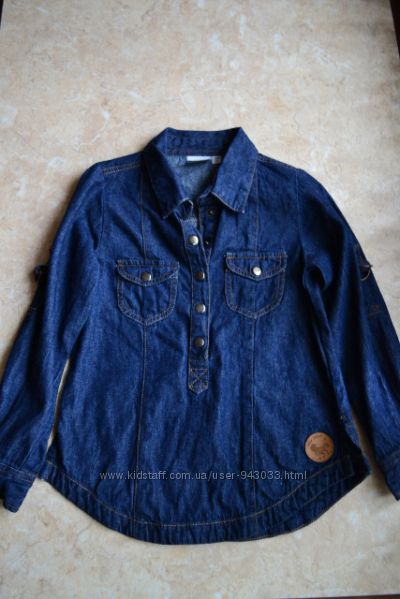 Джинсовая рубашка. Размер 5-6 лет. В идеальном состоянии. На кнопках. Длина рукава регулируется. Длина 47 см, рукав 41 см, грудь 33 см, плечи 26 см. Отправляю НП .