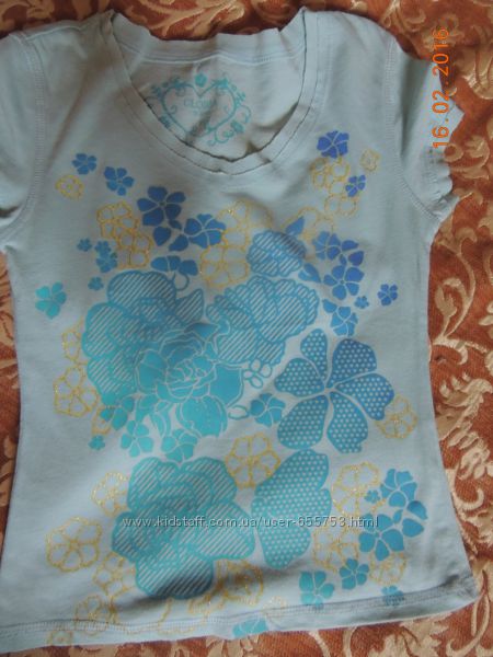 Голубая. Глория Джинс. Желтые цветы украшены блестками. Цвет футболки и