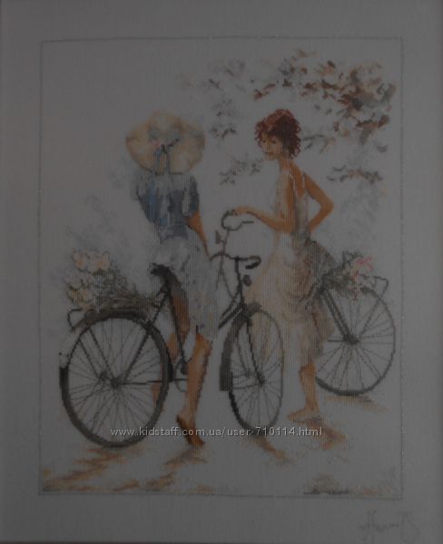 Подробное описание: Вышитая картина крестиком Велосипедистки Lanarte.