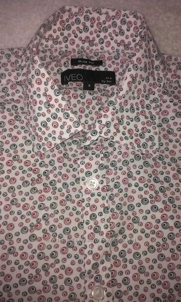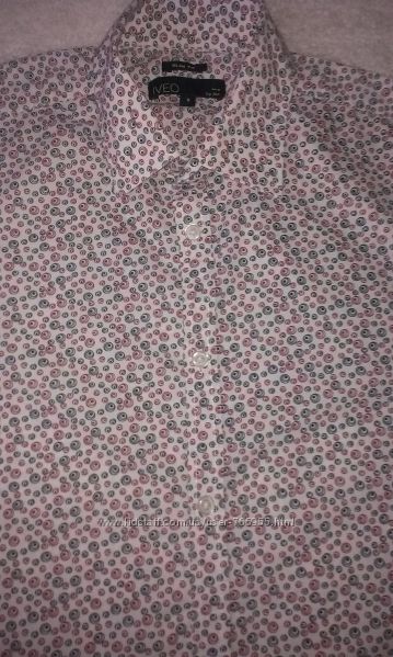 Фирменная мужская рубашка , геометрический принт, модный крой, закругленная линия низа, отличного качества привезена с Германии, хлопок, очень классная )