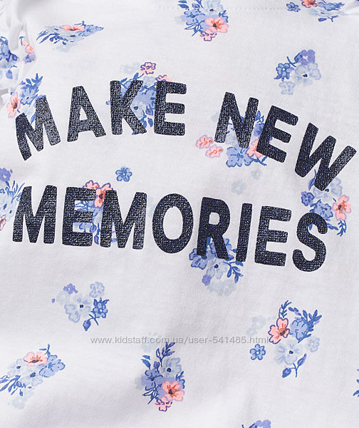 Майка-топ для дівчинки з бавовняного трикотажу з блискучим принтом. По проймах оздоблення оборочками. Із колекції провідного європейського бренду H&M.Розмір у наявності: