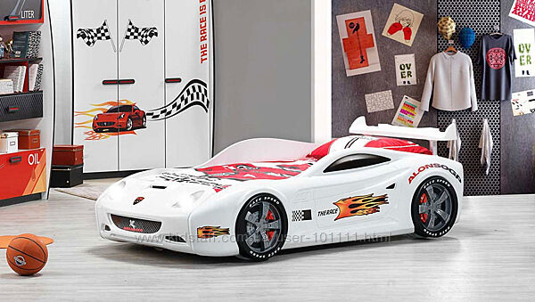 Очень реалистичный вид автомобиля, который обеспечивает комфортный отдых и место для занимательных игр - если снять матрац, кровать превратится в трек для автомобильных гонок