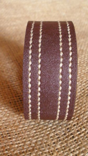 Браслет из натуральной кожи. Ручная работа. Прошит вручную седельным швом вощеной нитью белого цвета. Толщина: 1,5-1,8мм. Ширина: 28мм. Общая длина: 20,5см. Цвет браслета: бордовый. Застегивается на две кнопки. Внутренний диаметр браслета в застегнутом состоянии 17,5см.1. 100% предоплата осуществляется на карту ПриватБанка .