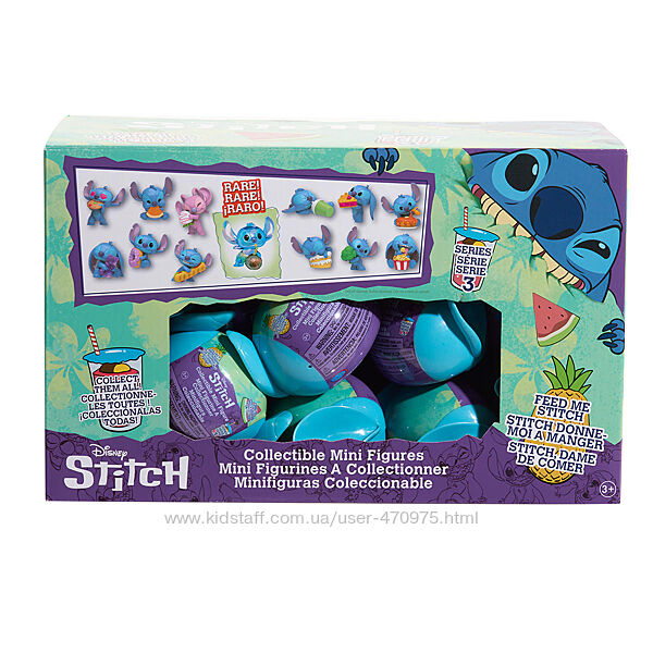 Зустрічайте улюбленого героя з мультфільму «Ліло та Стіч»! Стіч – це милий блакитний прибулець, який обожнює смаколики. У цій серії Ви можете знайти фігурку Стіча з глазурованим пончиком, апельсином, пирогом, попкорном чи печивом! Вони ідеально підходять для колекціонування та веселих ігор. З яким смаколиком Стіч Вам більше до вподоби?