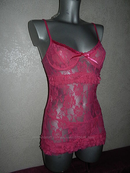 3/Ici et maintenant,франция!гипюровый комплект цвета фуксии, пеньюар, стринги,70с/75в, 400