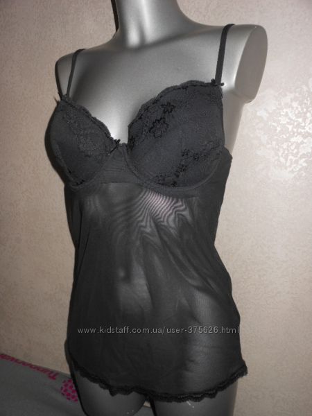 10/S/м*e-vie*роскошный комплект,черный пеньюар с чашками из стрейчсеточки + стринги, 500 грн