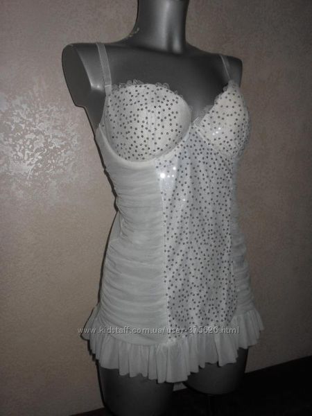 7/85с/д 38с/д*knickerbox*англия комаплект белый пеньюар стрейчсетка +стринги новый 450